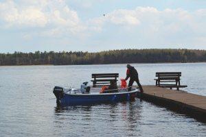 Nowy nabytek dziadków – motorówka dla gości. Oczywiście, że z Kosmykiem musieliśmy odbyć pierwsze „pływanie”. Z Mikołajek do „Przystani Jaskółka„. Adaś został z babcią i żegnał nas zdziwionym spojrzeniem :).
